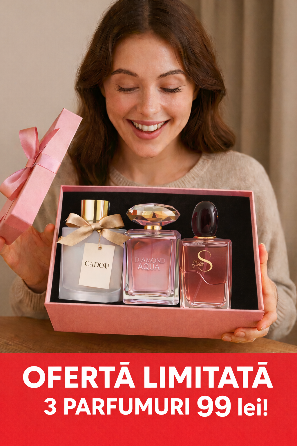 Descoperă un pachet avantajos cu 3 parfumuri de damă tip Eau de Parfum, perfect pentru a avea mereu la îndemână un parfum potrivit în funcție de moment: pentru zi, pentru ieșiri sau pentru ocazii speciale.